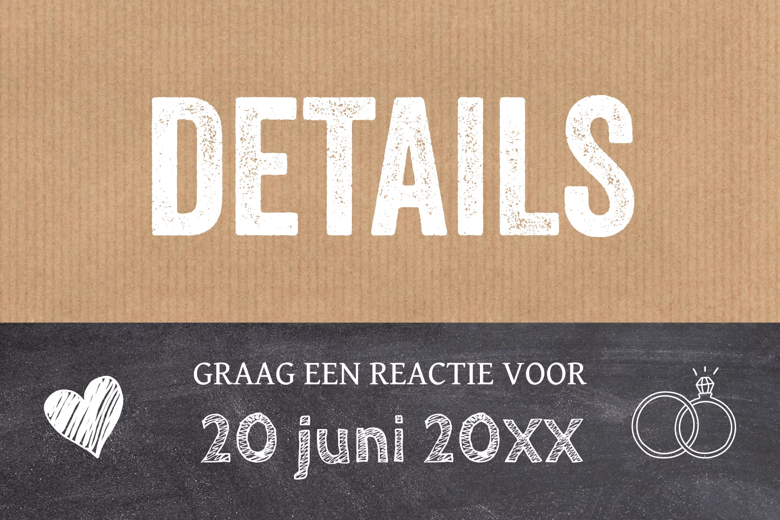 Een kaartje met extra bruiloft details. Handig voor de overige informatie of voor de informatie van de ceremoniemeester.