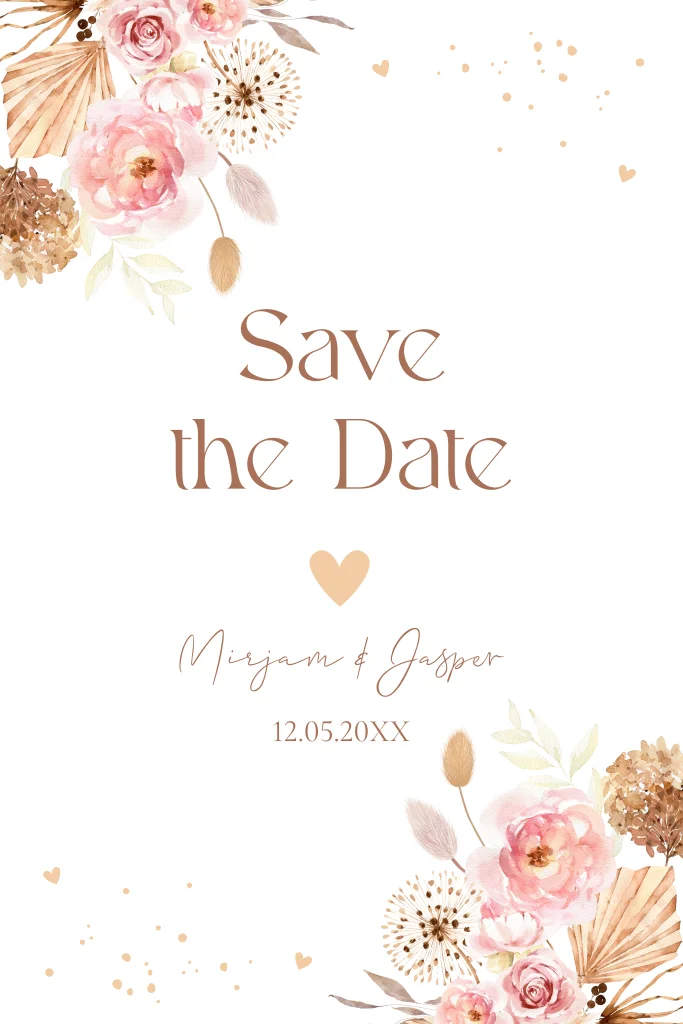 Save the Date kaart bohemian boho bloemen beige roze
