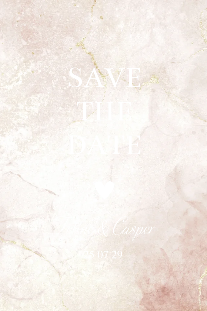 Stijlvolle save the date uitnodiging met beige marmerlook en goudfolie. Maak jullie trouwdatum bekend met deze mooie save the date!