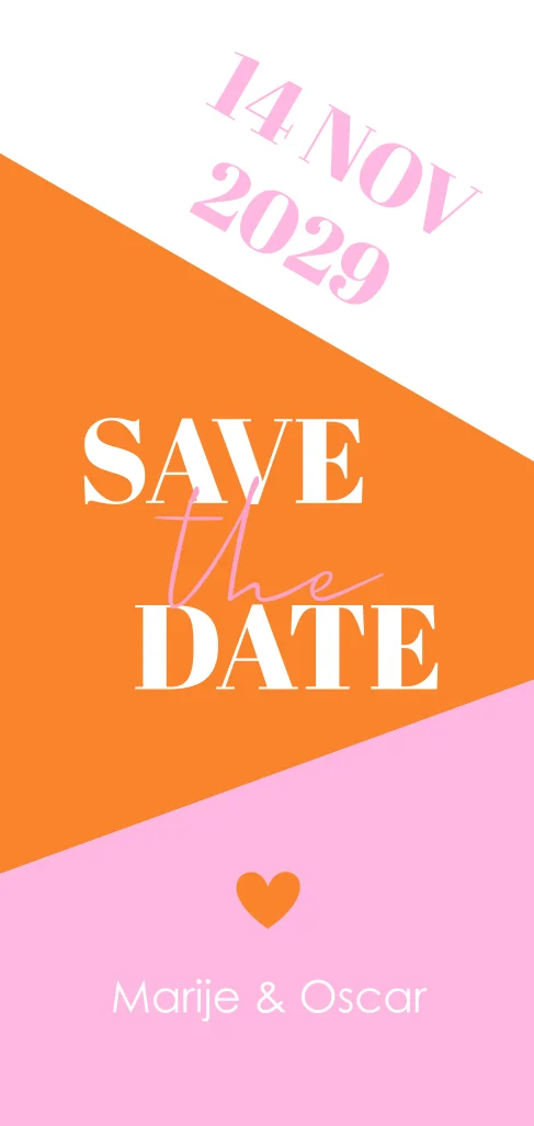 Save the Date kaart oranje roze colourblocking geometrisch