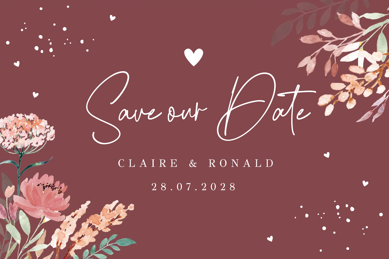 Save the Date kaart uitnodiging roze met watercolor bloemen. Maak jullie trouwdatum bekend met de prachtige prachtige save the date!