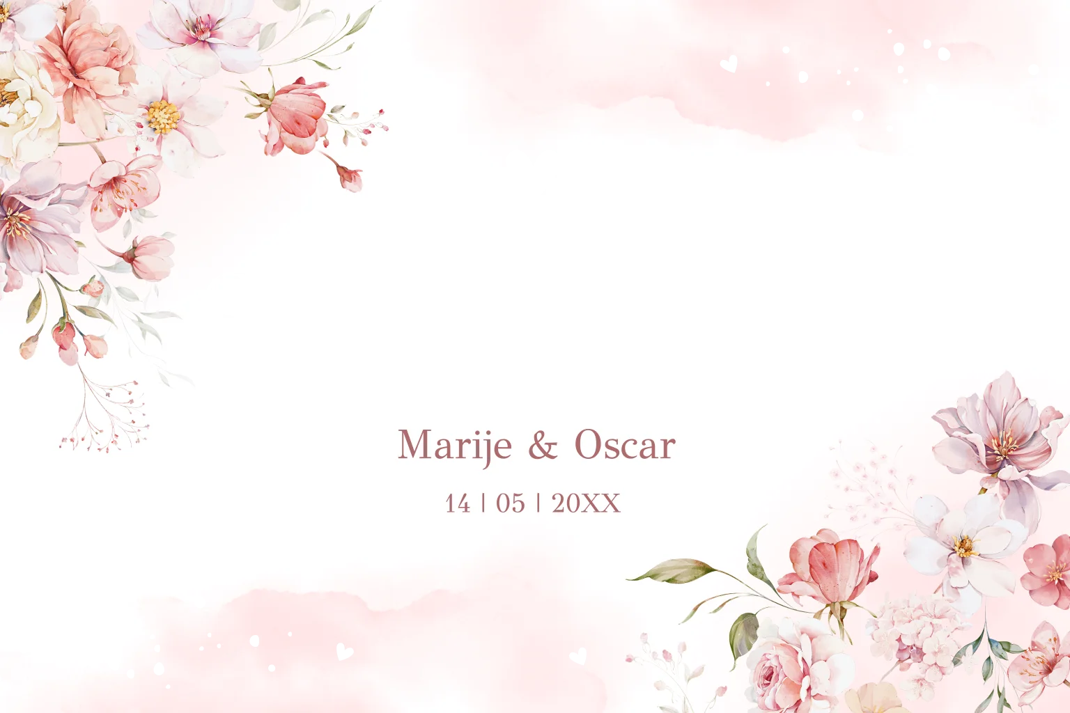Elegante Save the Date kaart met watercolour bloemen roze met rosegoudfolie. Vier de liefde met deze prachtige Save the Date uitnodiging!