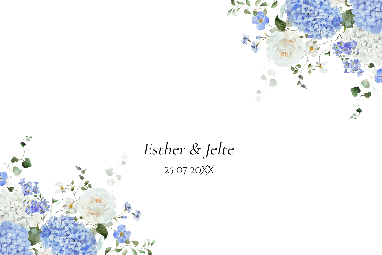 Save the Date kaart wit bloemen blauw hortensia rechthoekig
