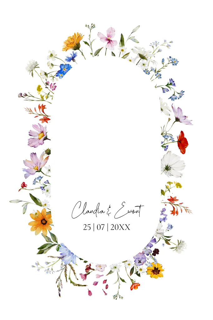 Save the Date kaart zomerse bloemenkrans goudfolie