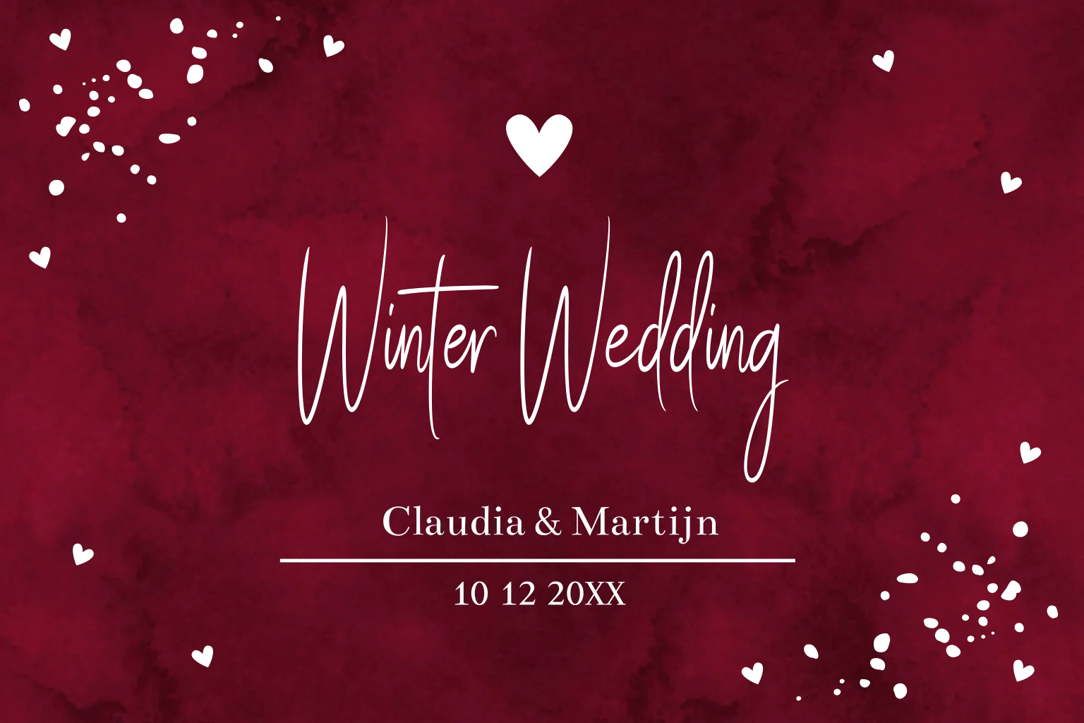 Trouwkaart winter wedding kerst rood hartje goudfolie