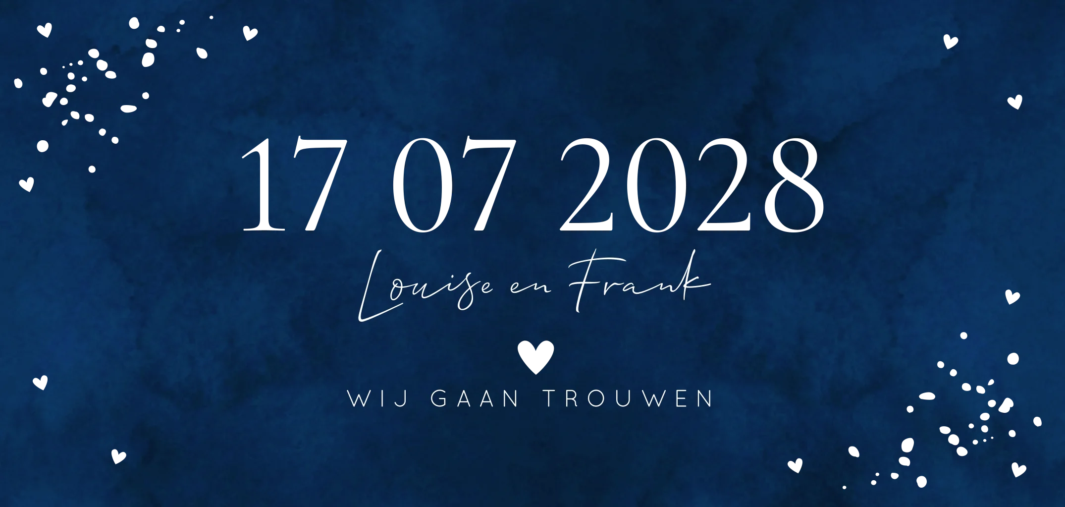 Trouwkaart blauw datum goudfolie langwerpig