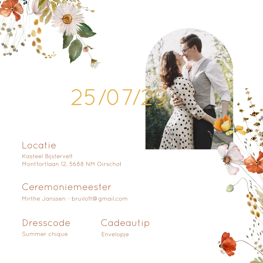 Trouwkaart veldbloemen rood houtlook botanisch