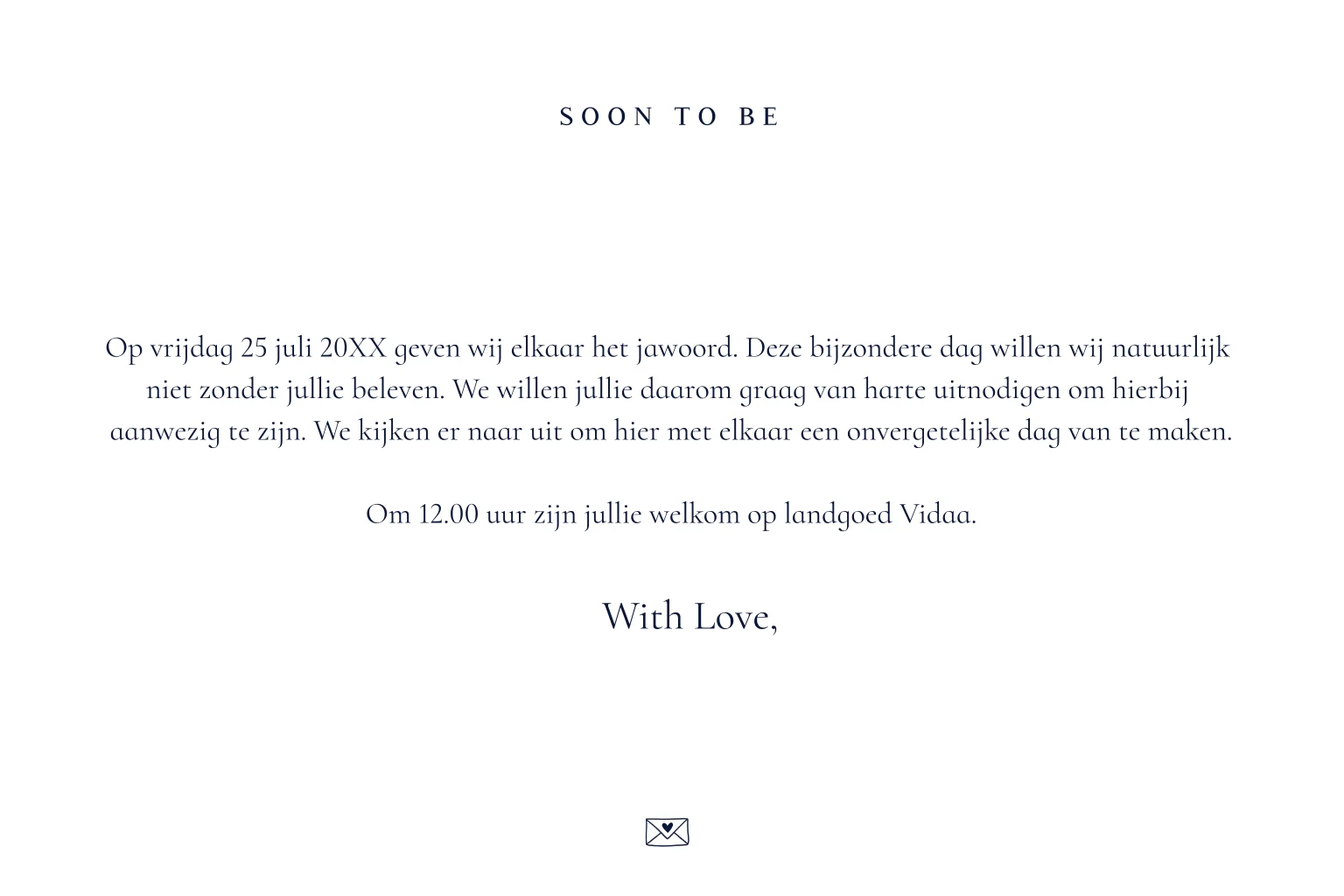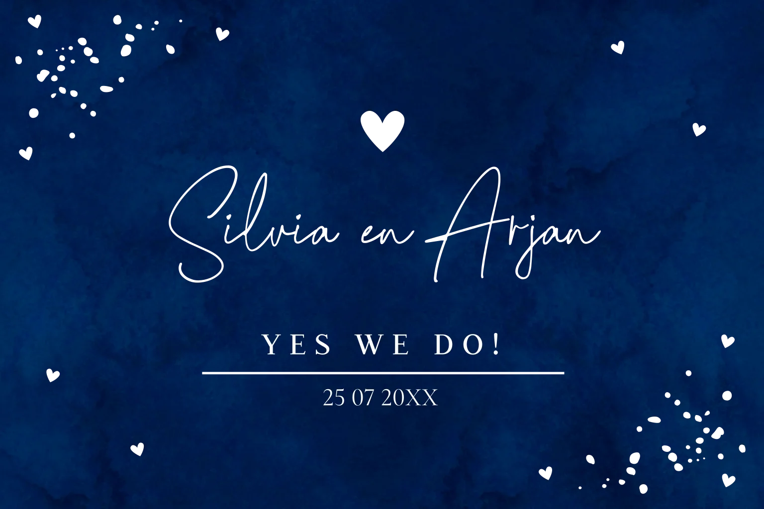 Stijlvolle trouwkaart donkerblauw met luxe goudfolie. Nodig jullie gasten uit met deze elegante trouwkaart!