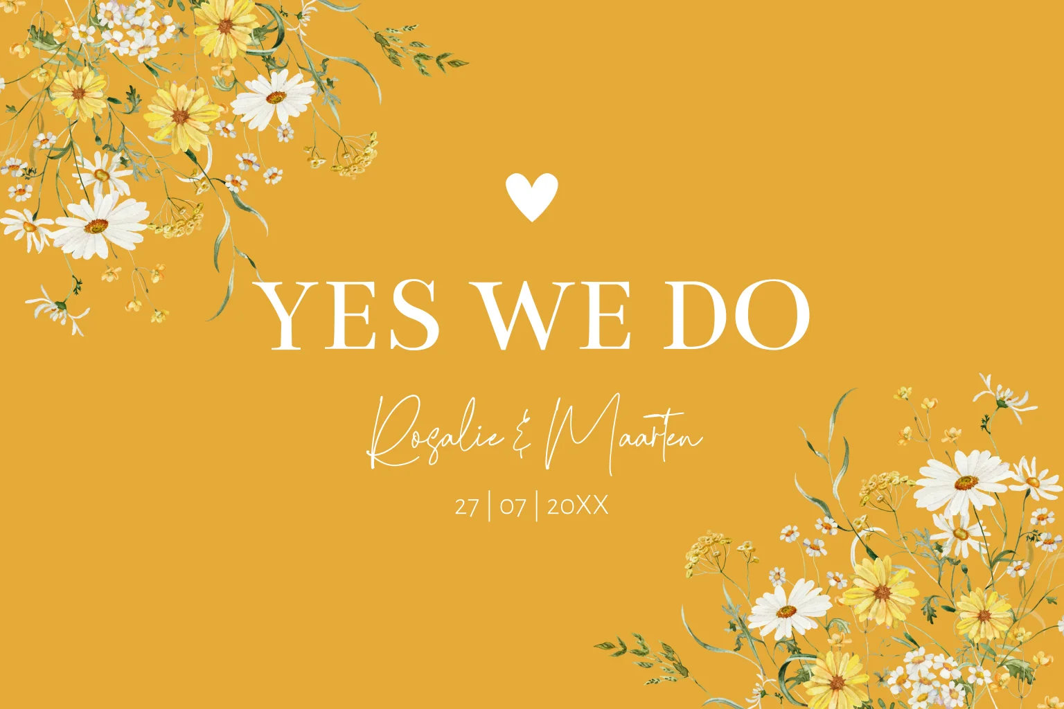 Trouwkaart okergeel veldbloemen rechthoekig dubbel