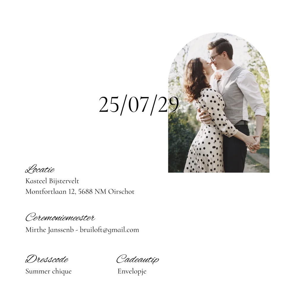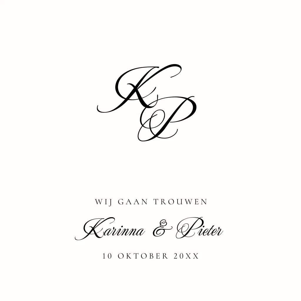 Stijlvolle chique trouwkaart zwart wit met sierlijke initialen naam.