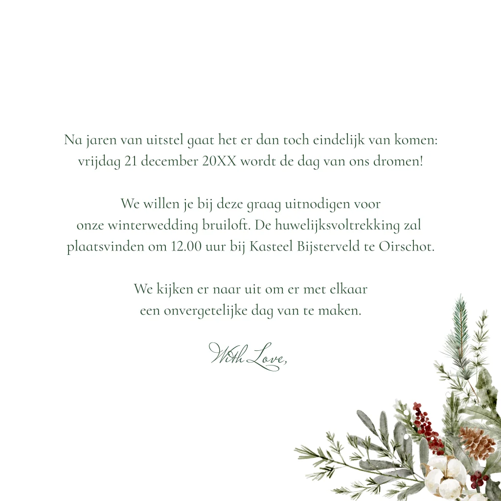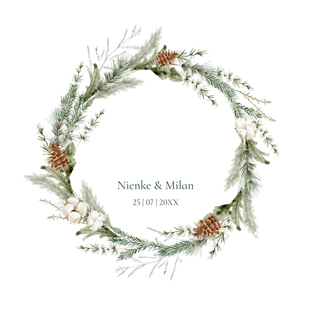 Trouwkaart winter wedding thema met prachtige kerstkrans en luxe goudfolie.
