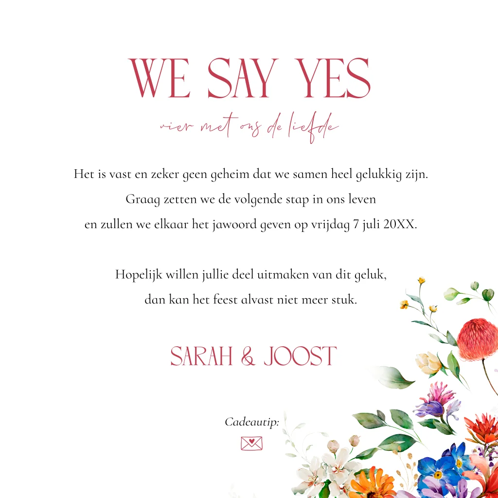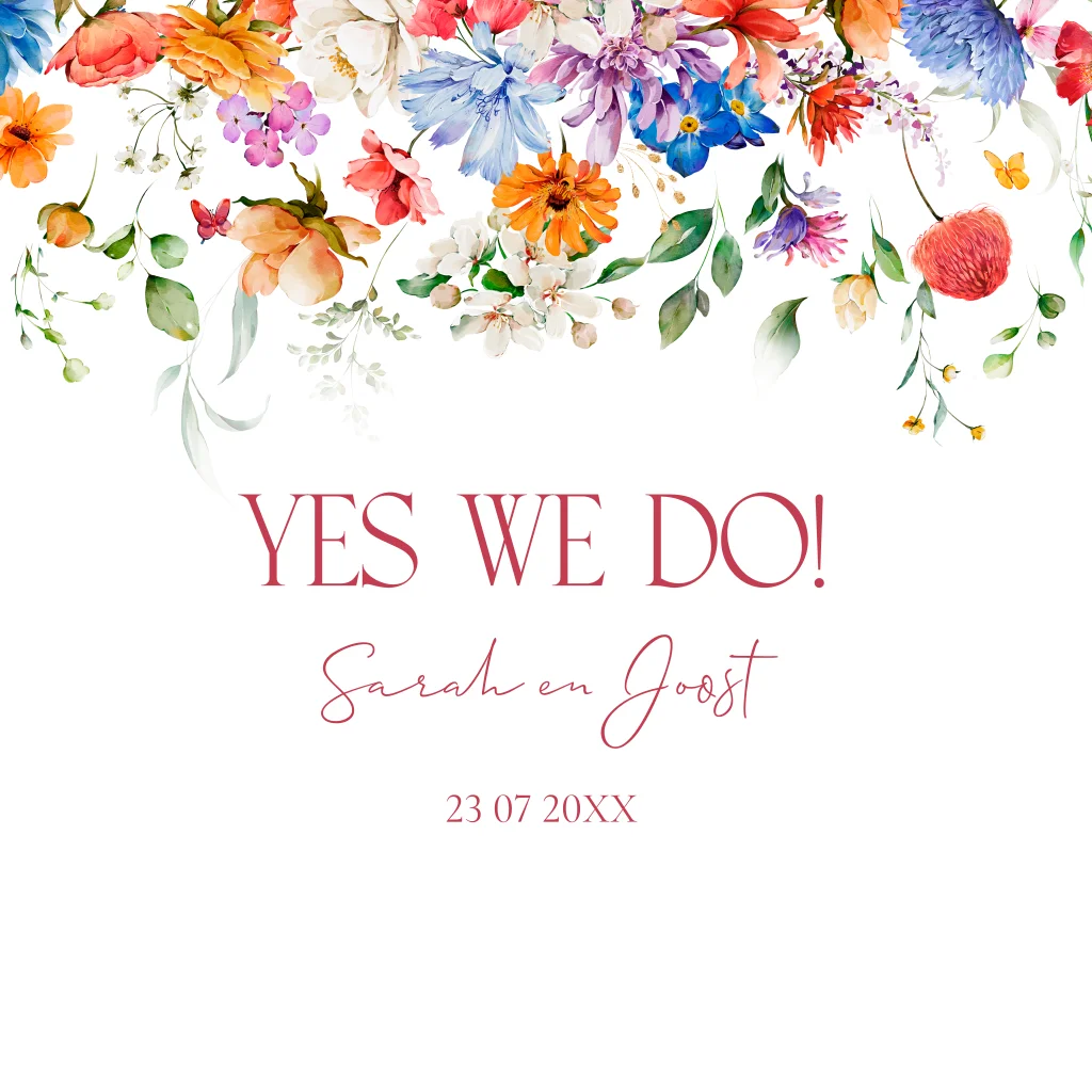 Trouwkaart wit met kleurrijke zomerse bloemen