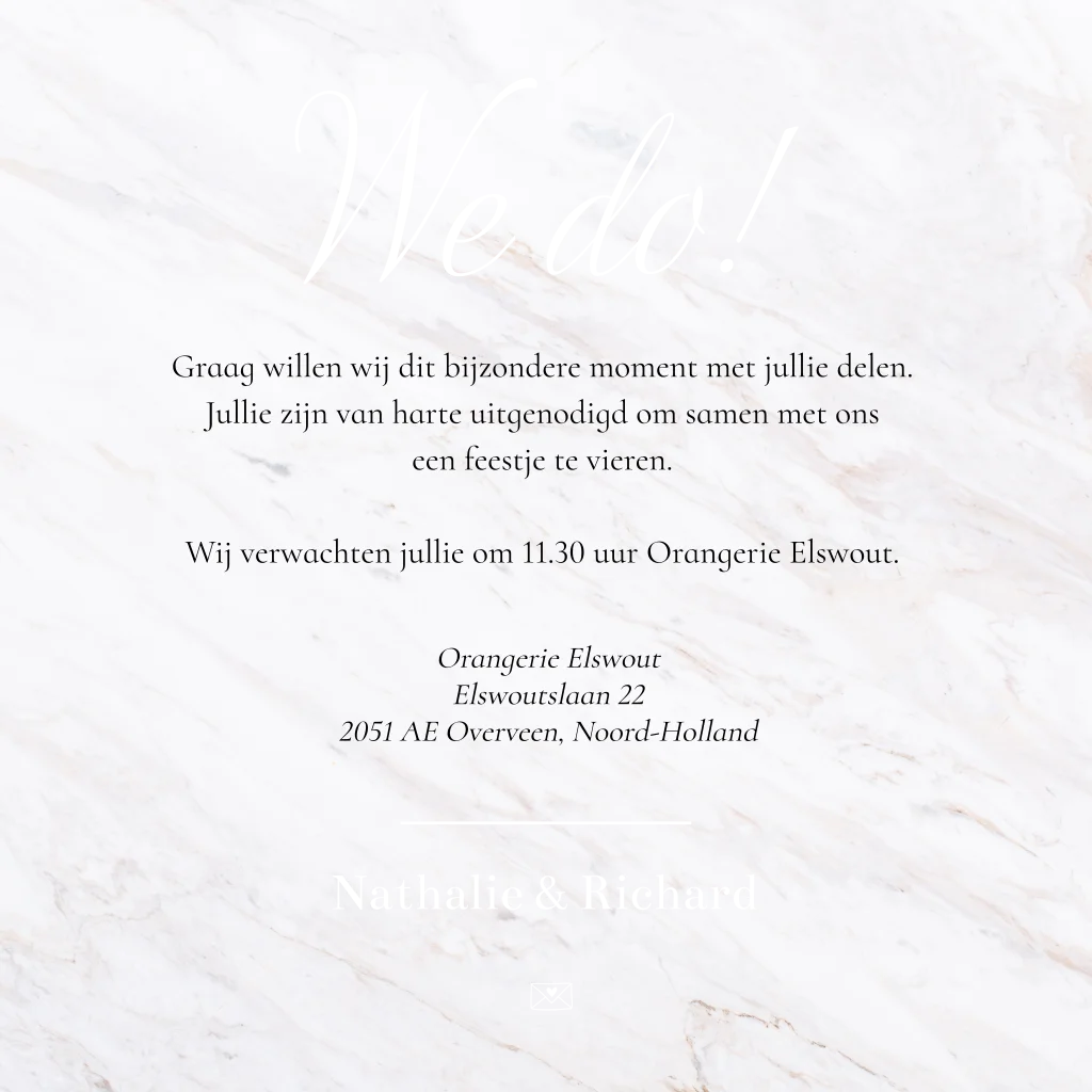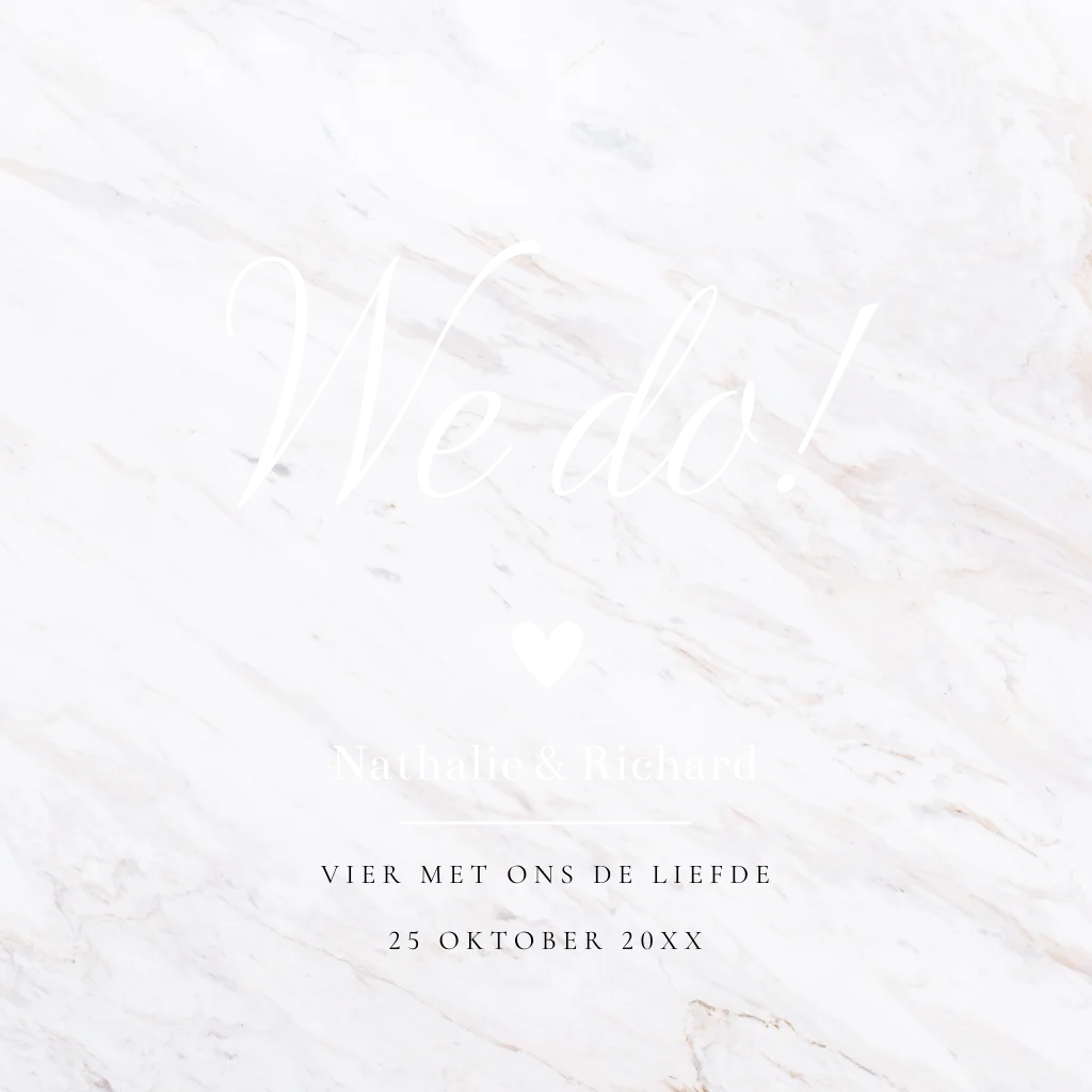 Klassieke trouwkaart wit met marmer look en luxe goudfolie.