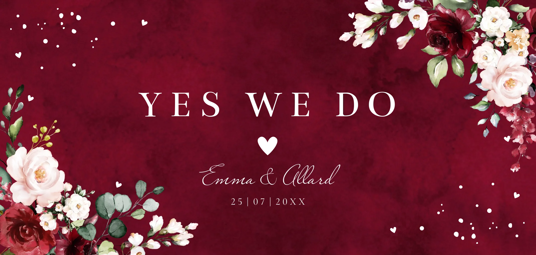 Trouwkaart rood bloemen luxe goudfolie panorama