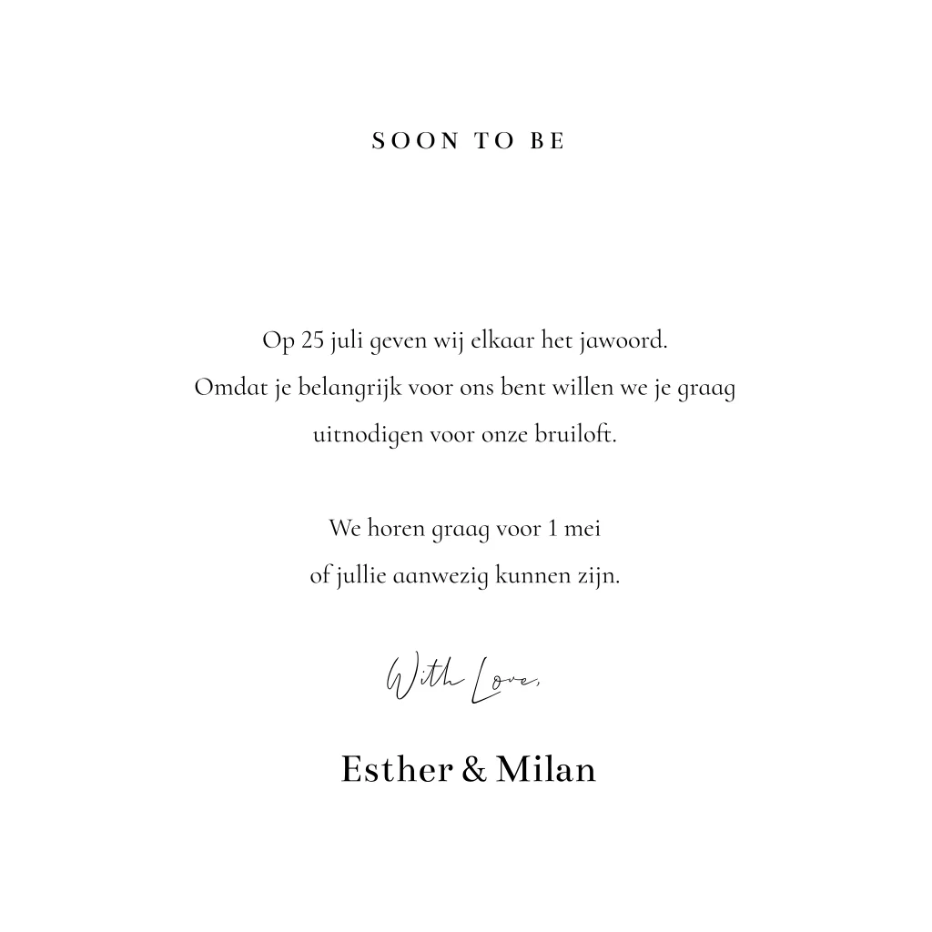 Elegante rustige trouwkaart vierkant wit met goudfolie. Nodig jullie gasten in stijl uit met deze prachtige trouwkaart met foliedruk.