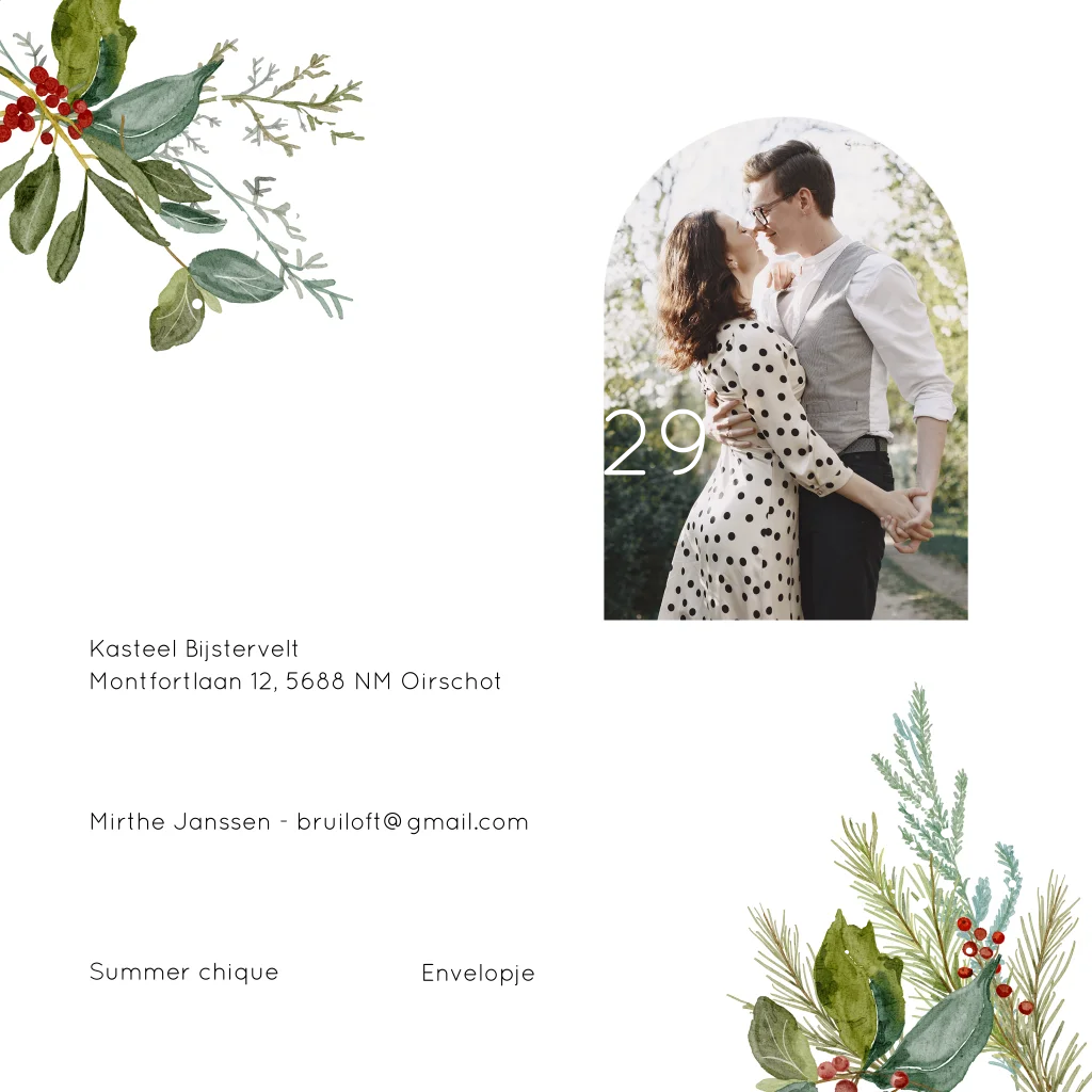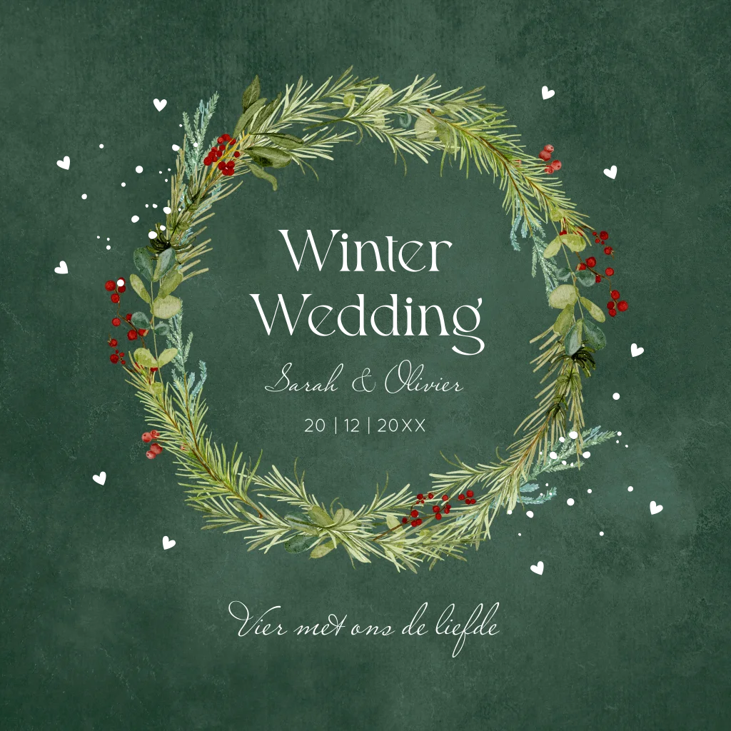 Winter Wedding kerst trouwkaart groen kerstkrans goudfolie