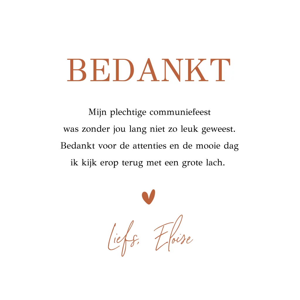 Bedankkaart communie wit met fotocollage en mooie typografie.