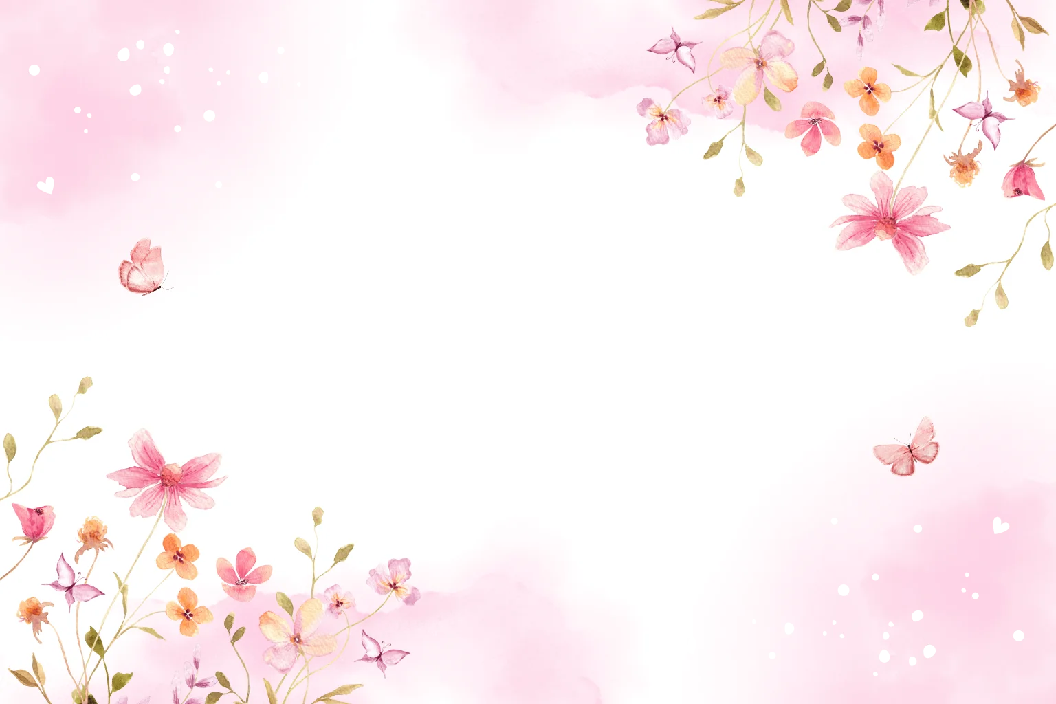Bedankkaart communie meisje met bloemen, waterverf roze en goudfolie.