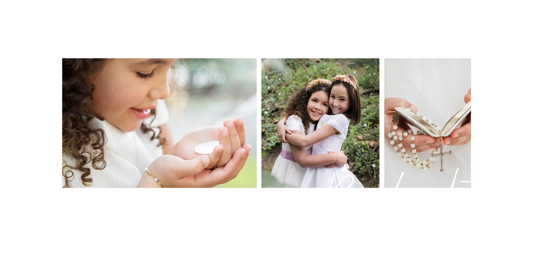 Bedankkaart communie panorama wit voor een meisje met fotocollage en goudfolie.