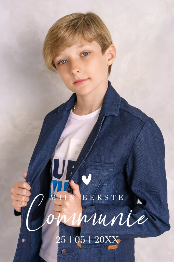 Communie uitnodiging jongen eigen foto rechthoekig