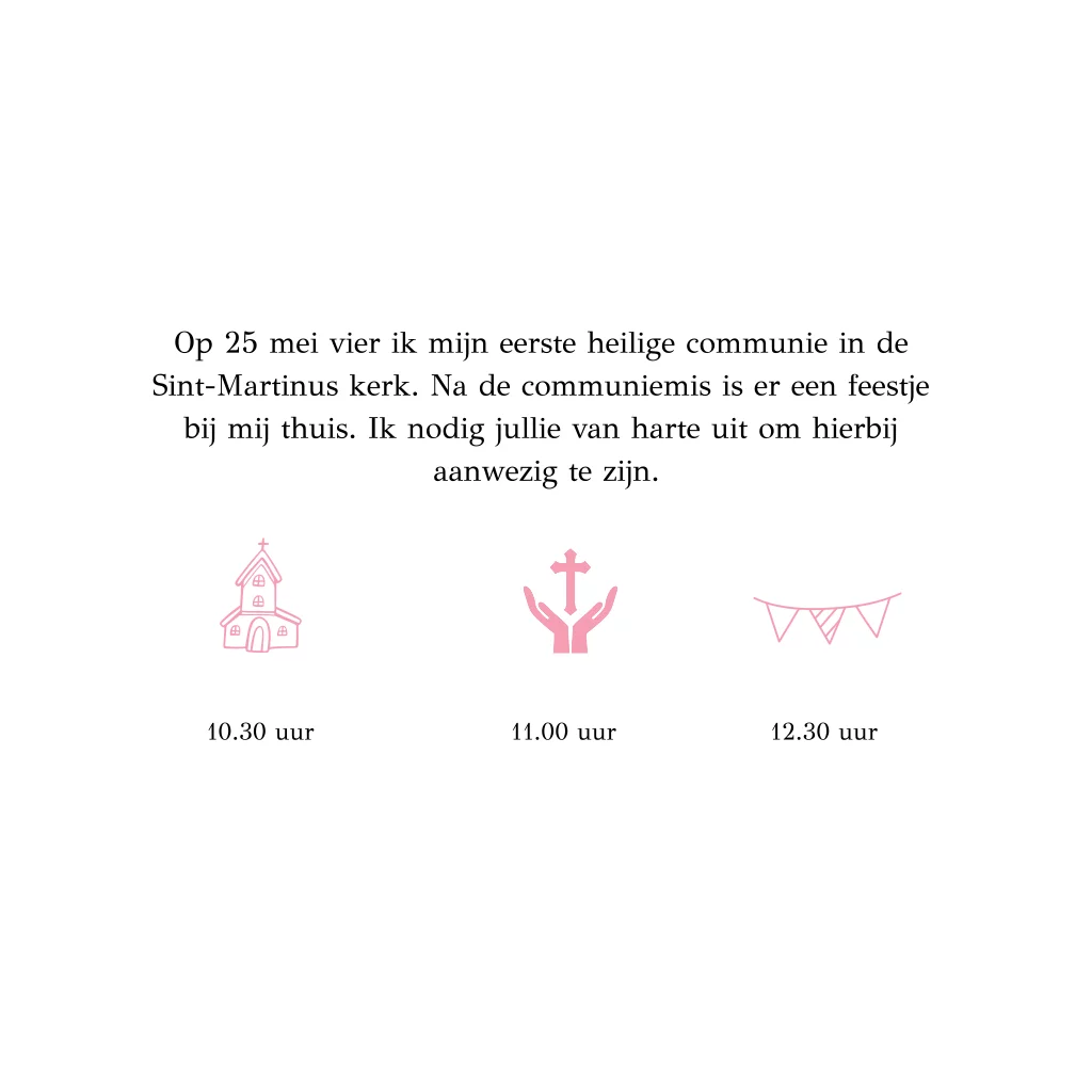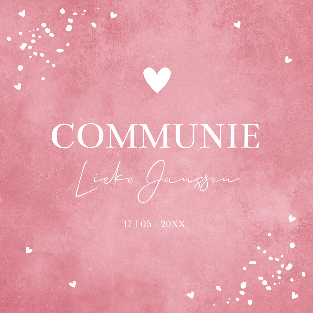 Communie uitnodiging meisje roze hartje goudfolie