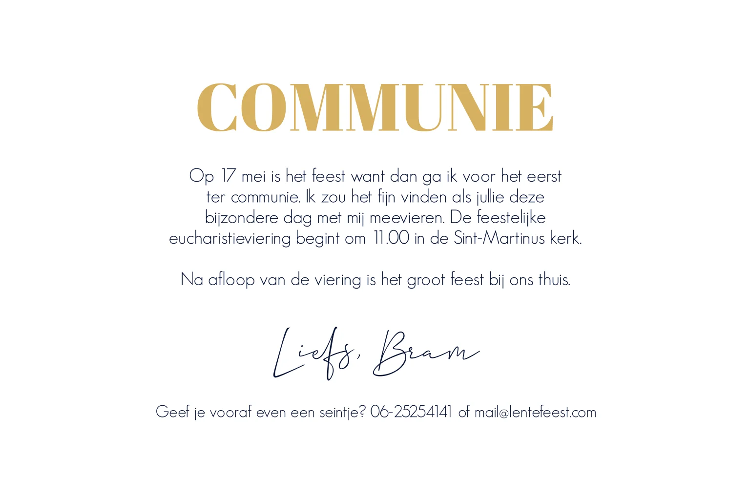 Communie uitnodiging jongen donkerblauw modern rustig.