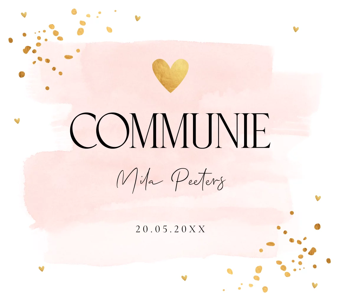 Communiekaart waterverf roze goudlook in Belgisch formaat. Geen goudfolie!