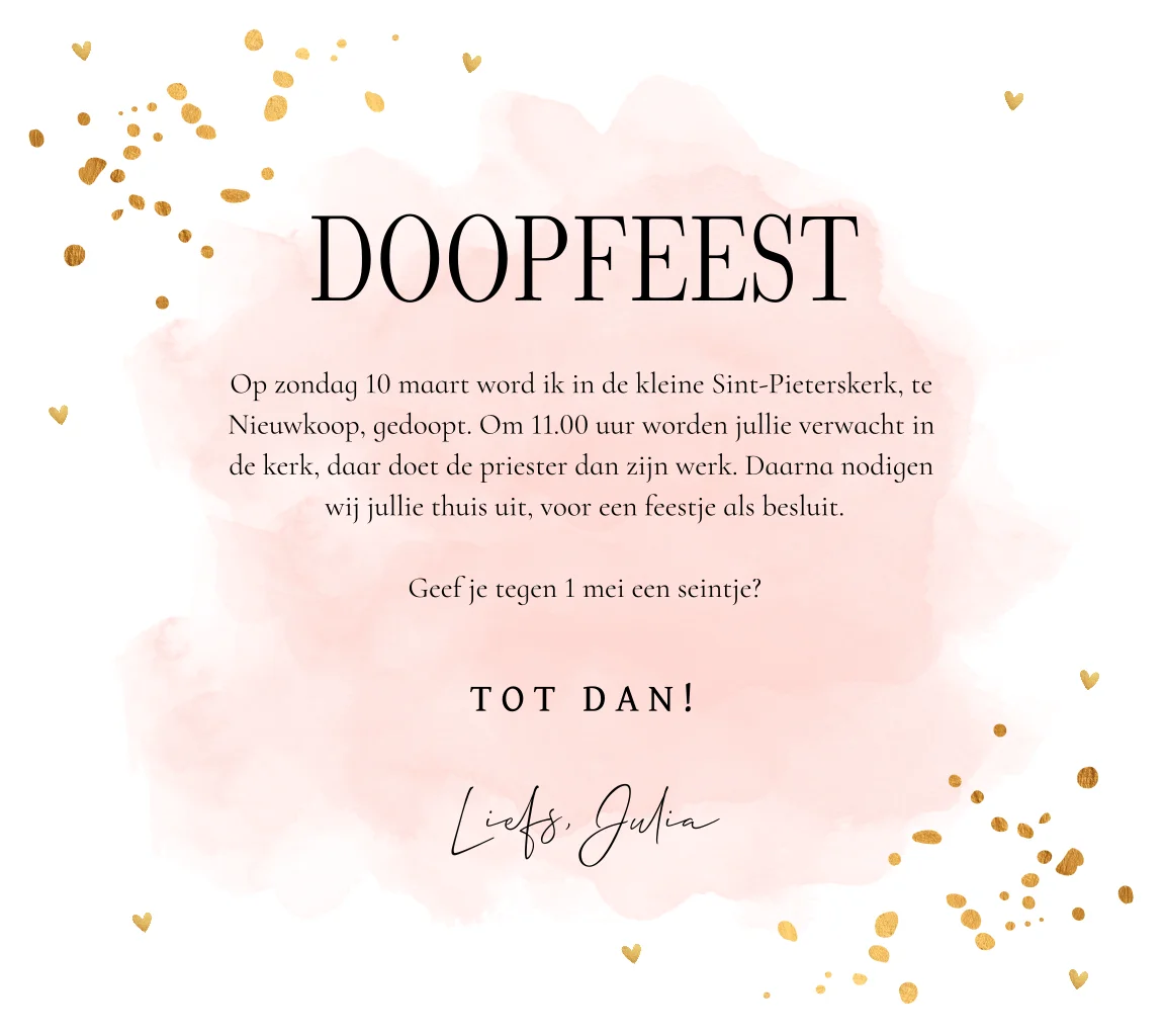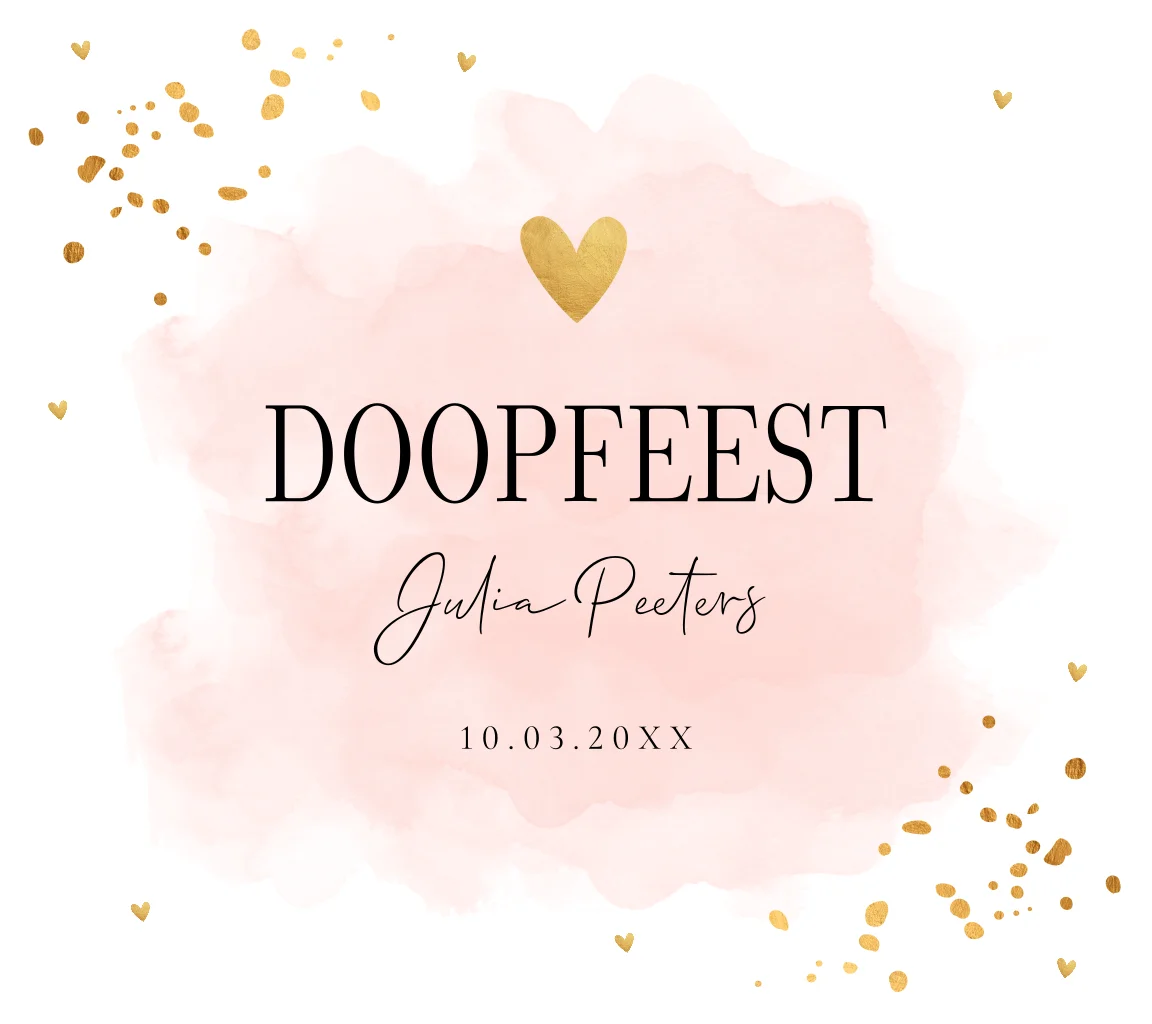 Doopkaart waterverf roze goudlook in Belgisch formaat. Geen goudfolie!