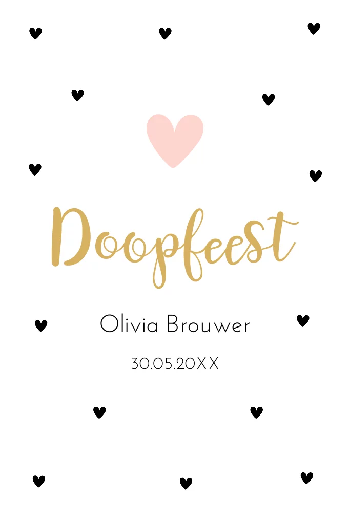 Doopkaart uitnodiging voor een meisje met hartjes.