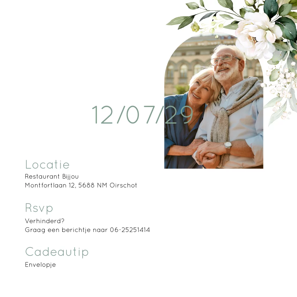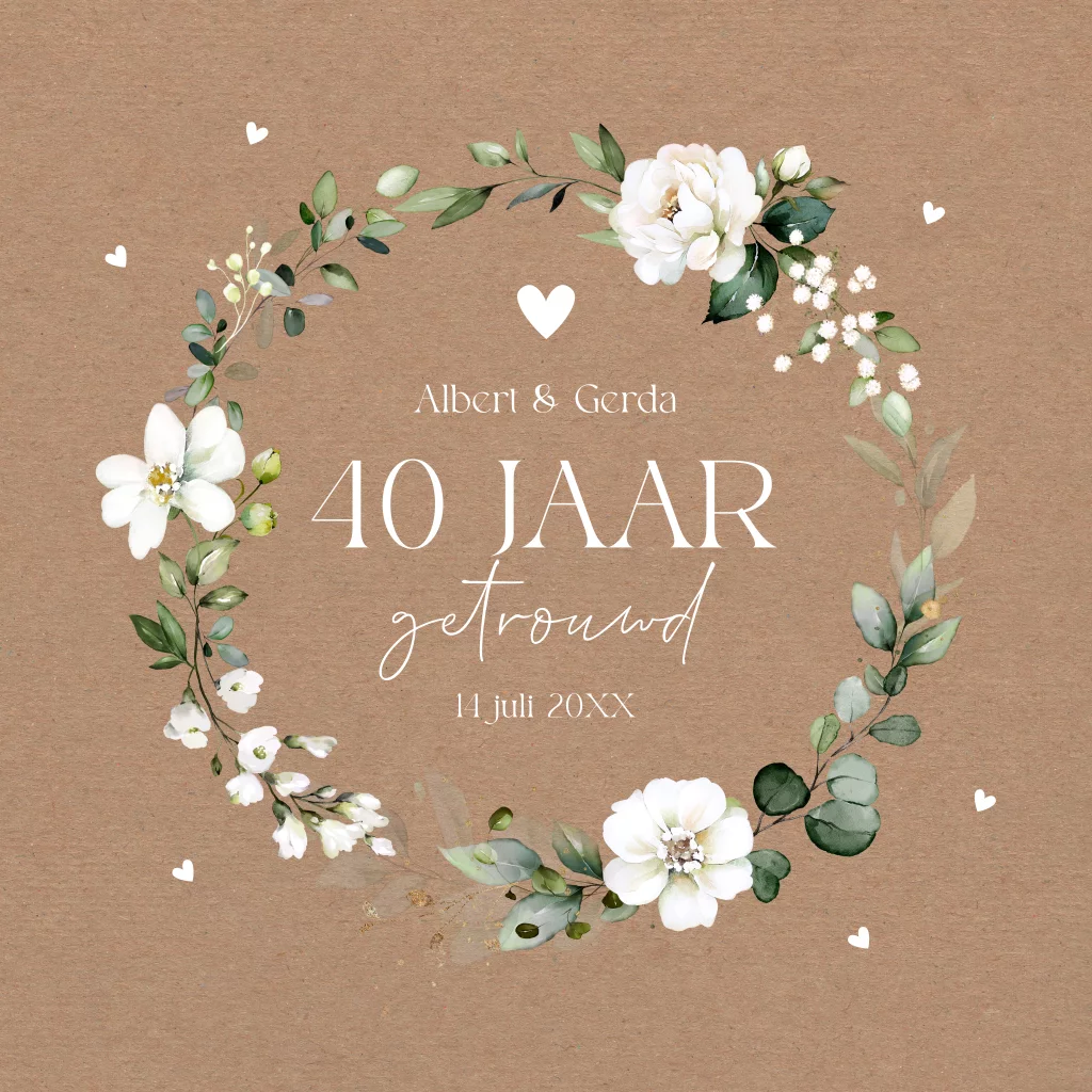 Jubileum uitnodiging 40 jaar getrouwd bloemenkrans kraftlook
