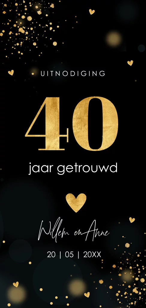 Jubileum uitnodiging 40 jaar getrouwd zwart goudlook