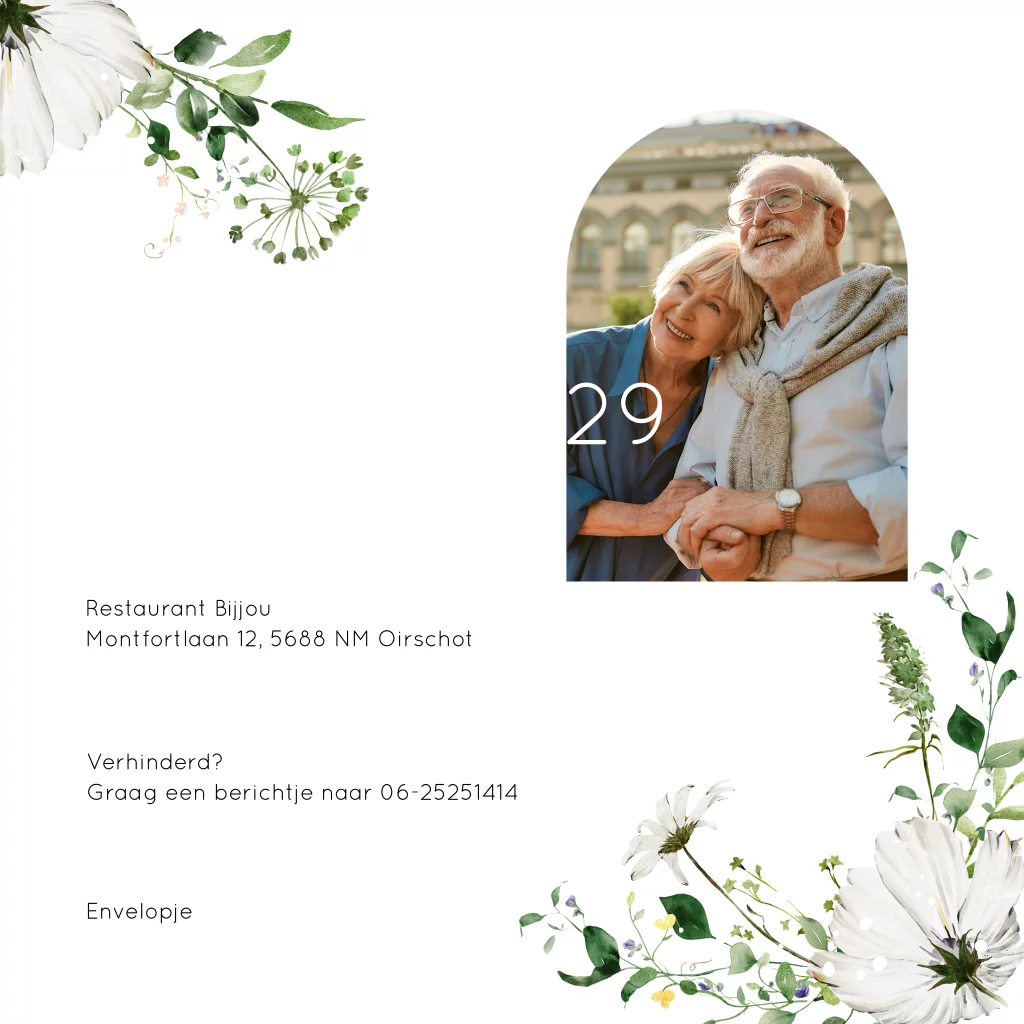 Jubileum uitnodiging 50 jaar getrouwd botanisch groen goudfolie