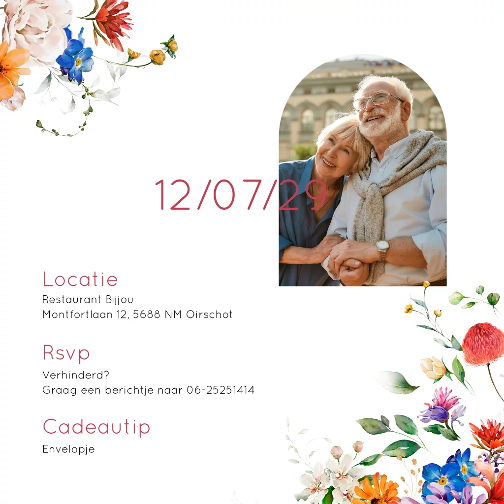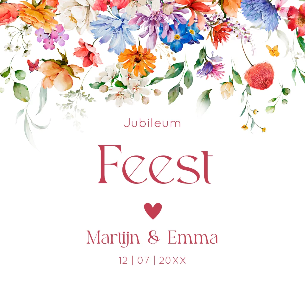 Jubileum uitnodiging 50 jaar getrouwd kleurrijke bloemen