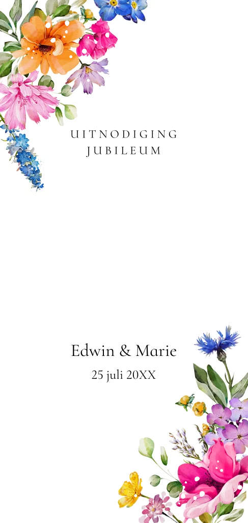 Jubileum uitnodiging 12,5 jaar getrouwd bloemen roze goudfolie