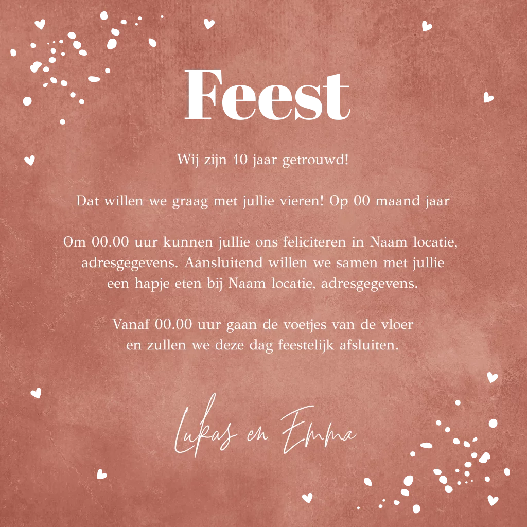 Jubileumkaart uitnodiging 10 jaar getrouwd foto terracotta goudfolie