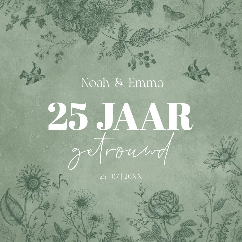Uitnodiging huwelijk jubileum 25 jaar getrouwd groen botanisch