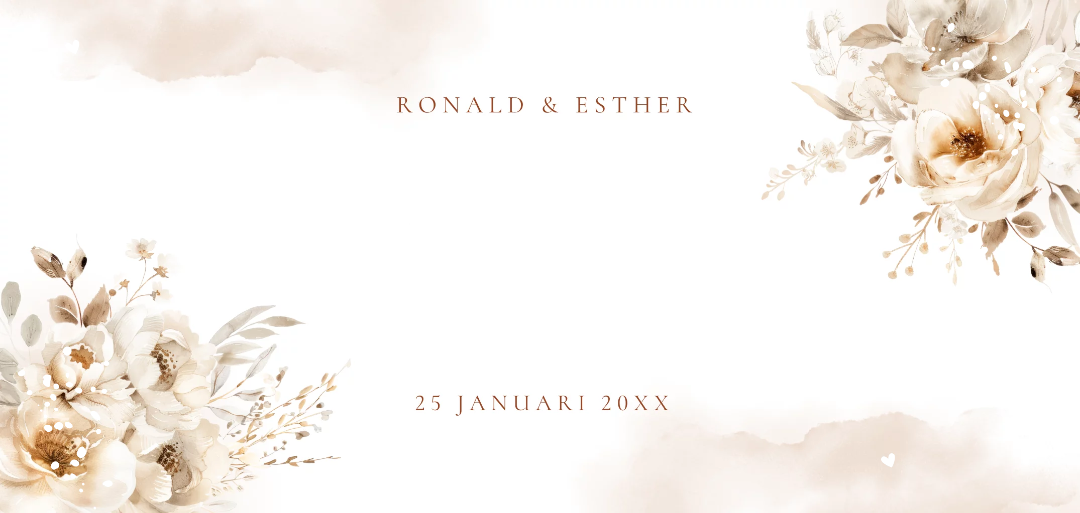 Uitnodiging jubileum huwelijk kaart 12,5 jaar getrouwd met watercolour, bohemian bloemen beige en goudfolie
