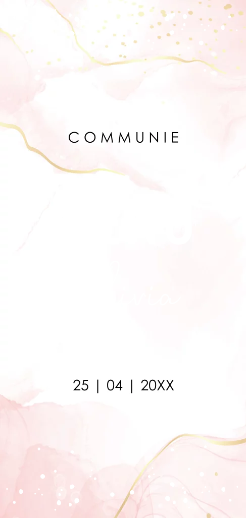 Menukaart communie langwerpig roze met watercolour en goudfolie.