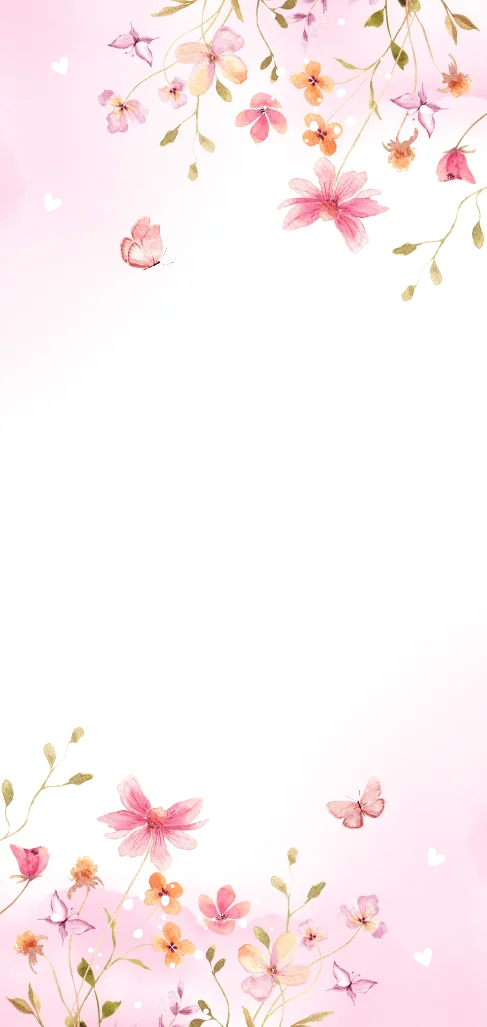 Menukaart communie langwerpig met watercolour bloemen roze en goudfolie.