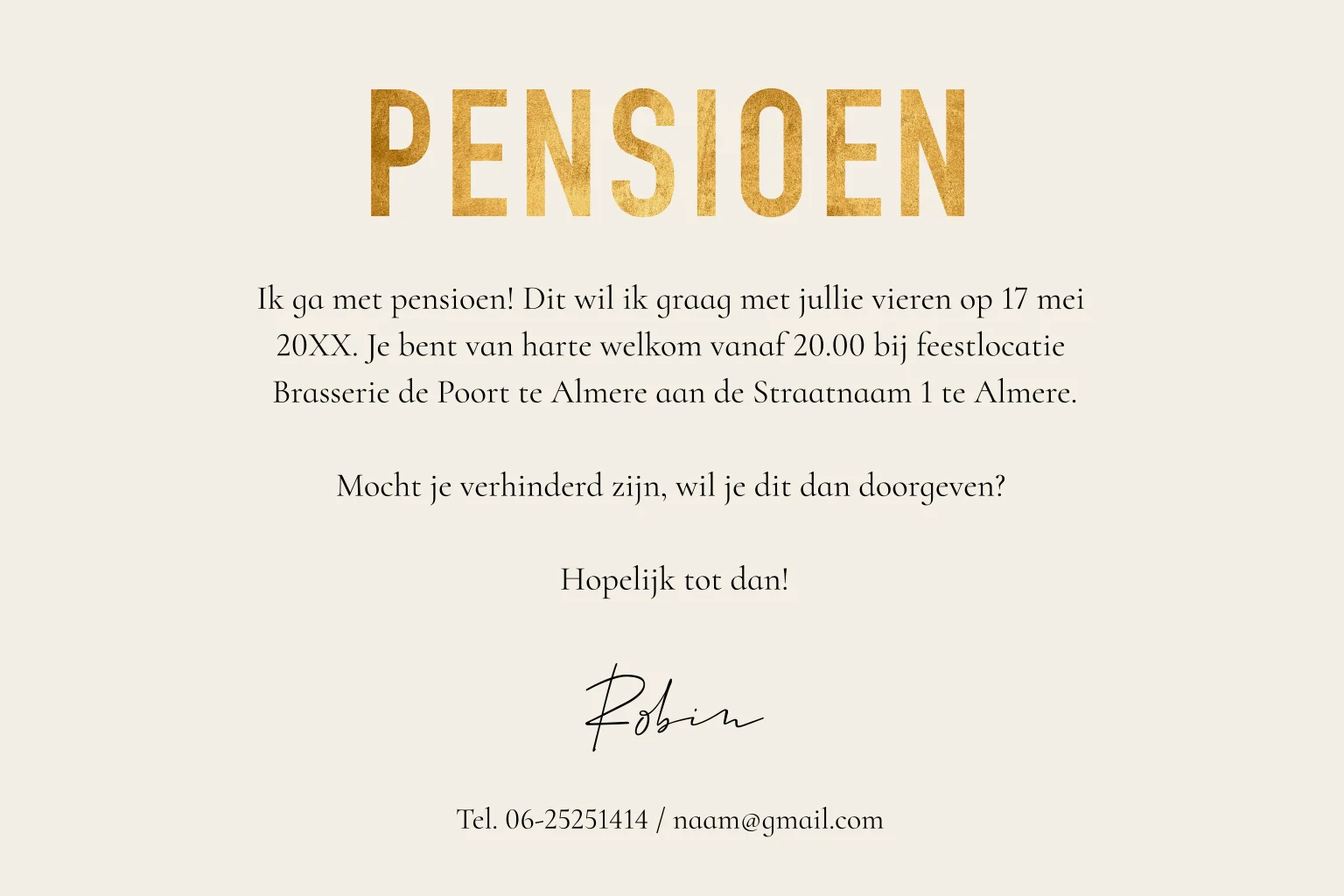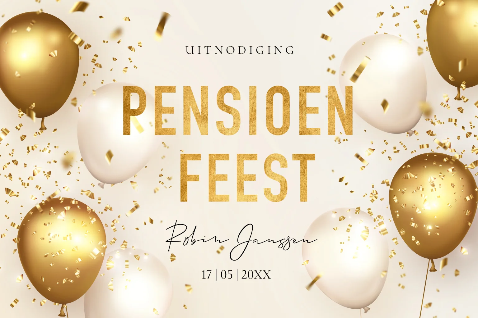 Pensioenkaart uitnodiging ballonnen goudlook
