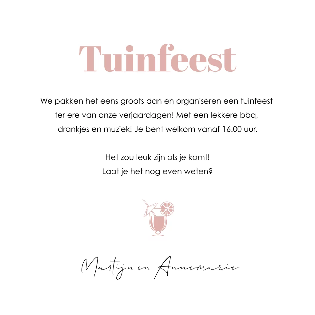 Uitnodigingen kinderfeestje, doopfeest, babyshower, communie, geslaagd, high tea, housewarming, jubileum, kerstdiner, pensioen, save the dat, tuinfeest, BBQ of verjaardag.
