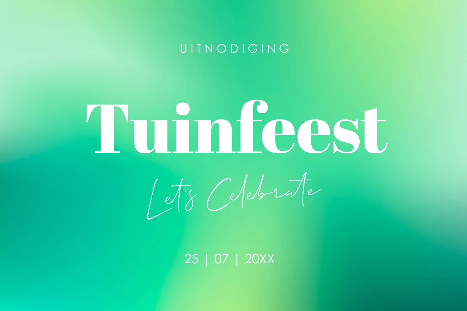 Tuinfeest uitnodiging regenboog kleuren groen met holografische folie.