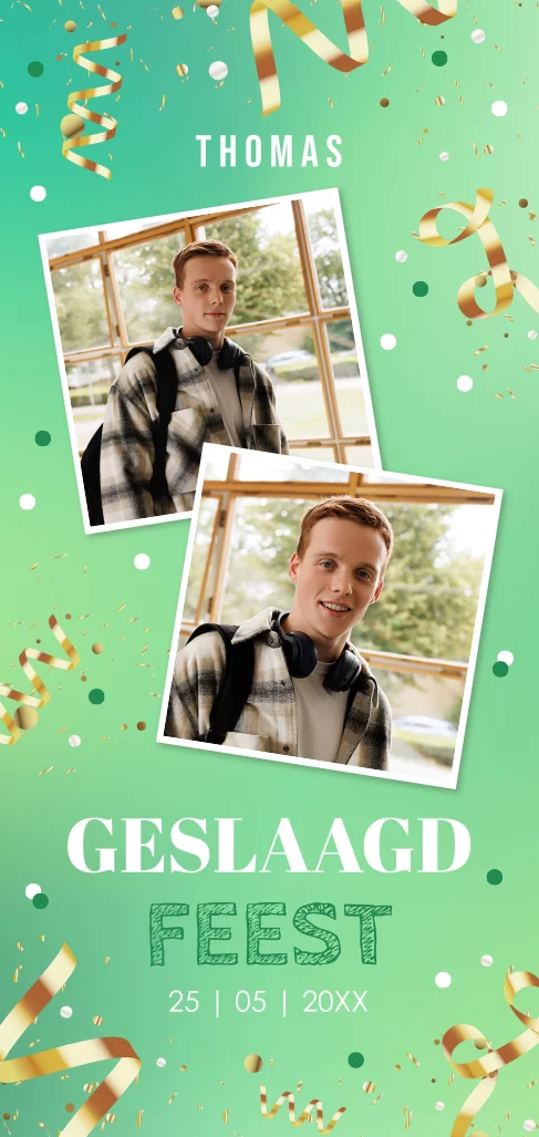 Uitnodiging geslaagd feestje diploma langwerpig eigen foto groen