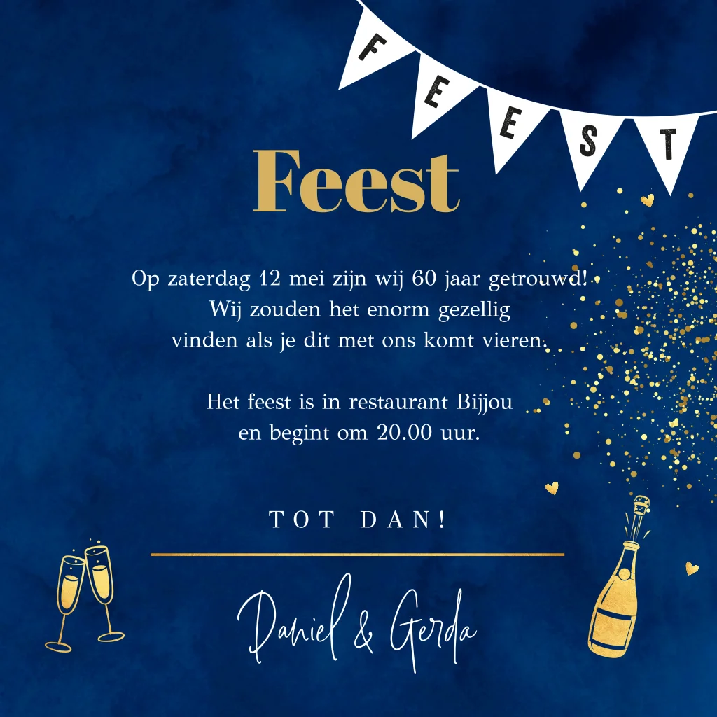 Uitnodiging jubileum huwelijk 60 jaar getrouwd blauw foto goudlook