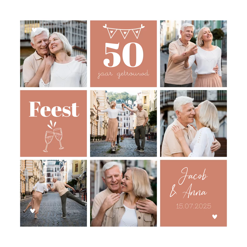 Uitnodiging jubileum huwelijk 50 jaar getrouwd fotocollage goudfolie