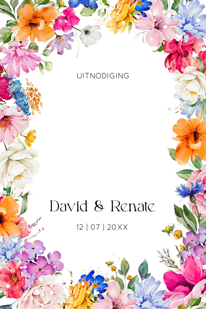 Uitnodiging jubileum huwelijk kleurrijke bloemenkrans 50 jaar getrouwd
