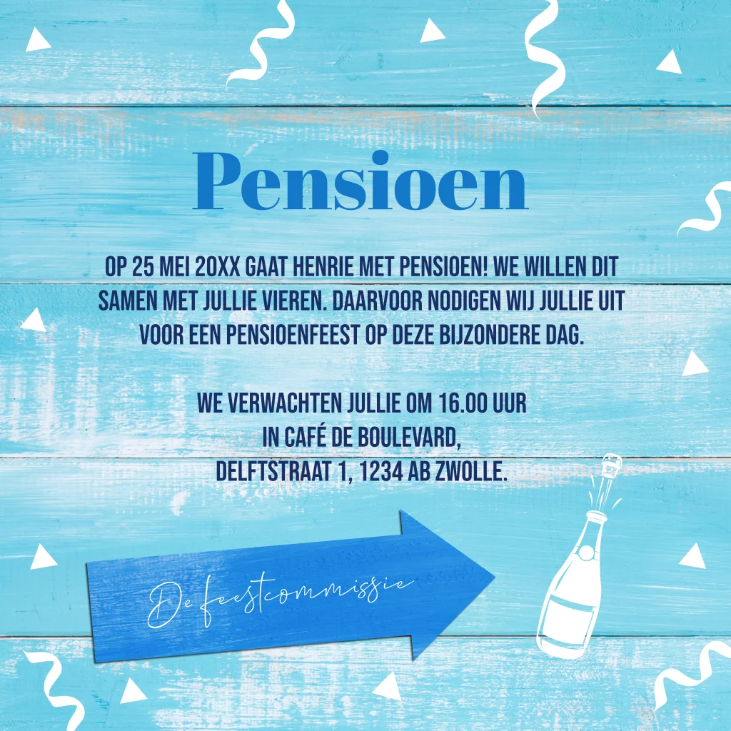Pensioen uitnodiging man blauw foto houtlook feest confetti