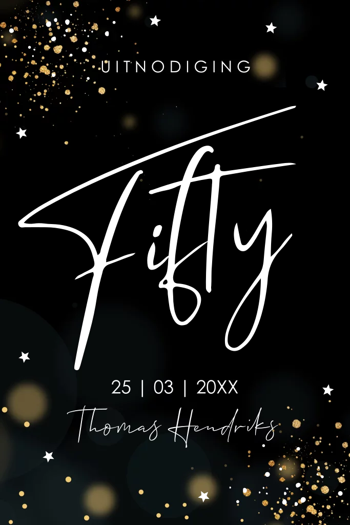 Op zoek naar een stijlvolle en feestelijke uitnodiging voor een 50e verjaardag? Zoek niet verder! Onze uitnodiging verjaardag zwart goud 50 jaar met en goudfolie is precies wat je nodig hebt. Met een chique zwart en goud ontwerp, is deze verjaardagsuitnodiging perfect om familie en vrienden mee uit te nodigen.