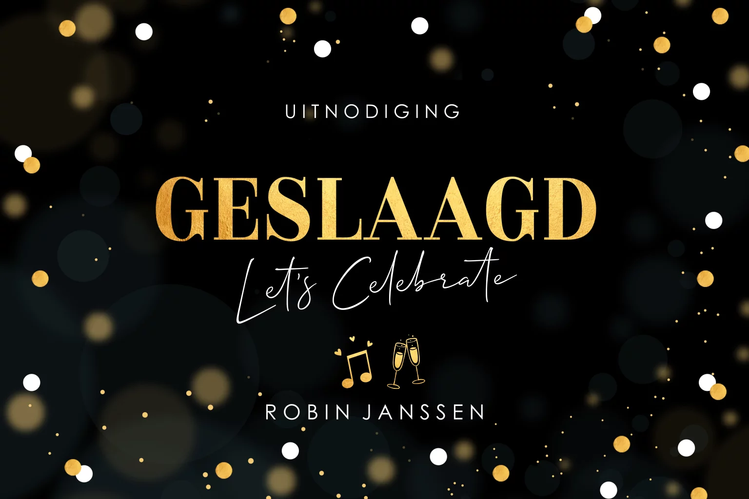 Uitnodiging geslaagd examenfeest zwartgoud look