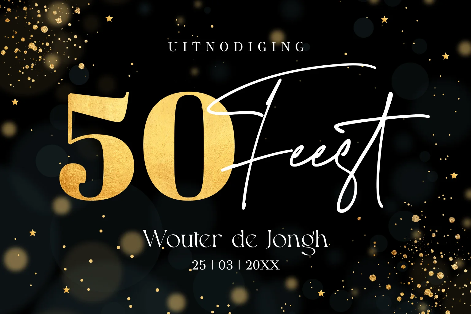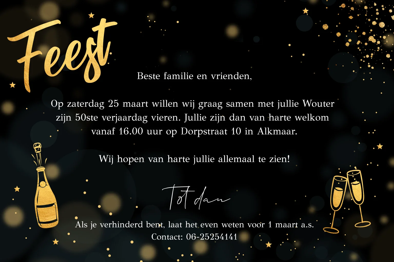 Uitnodiging verjaardag 50 jaar zwart met goudlook. Geen folie!